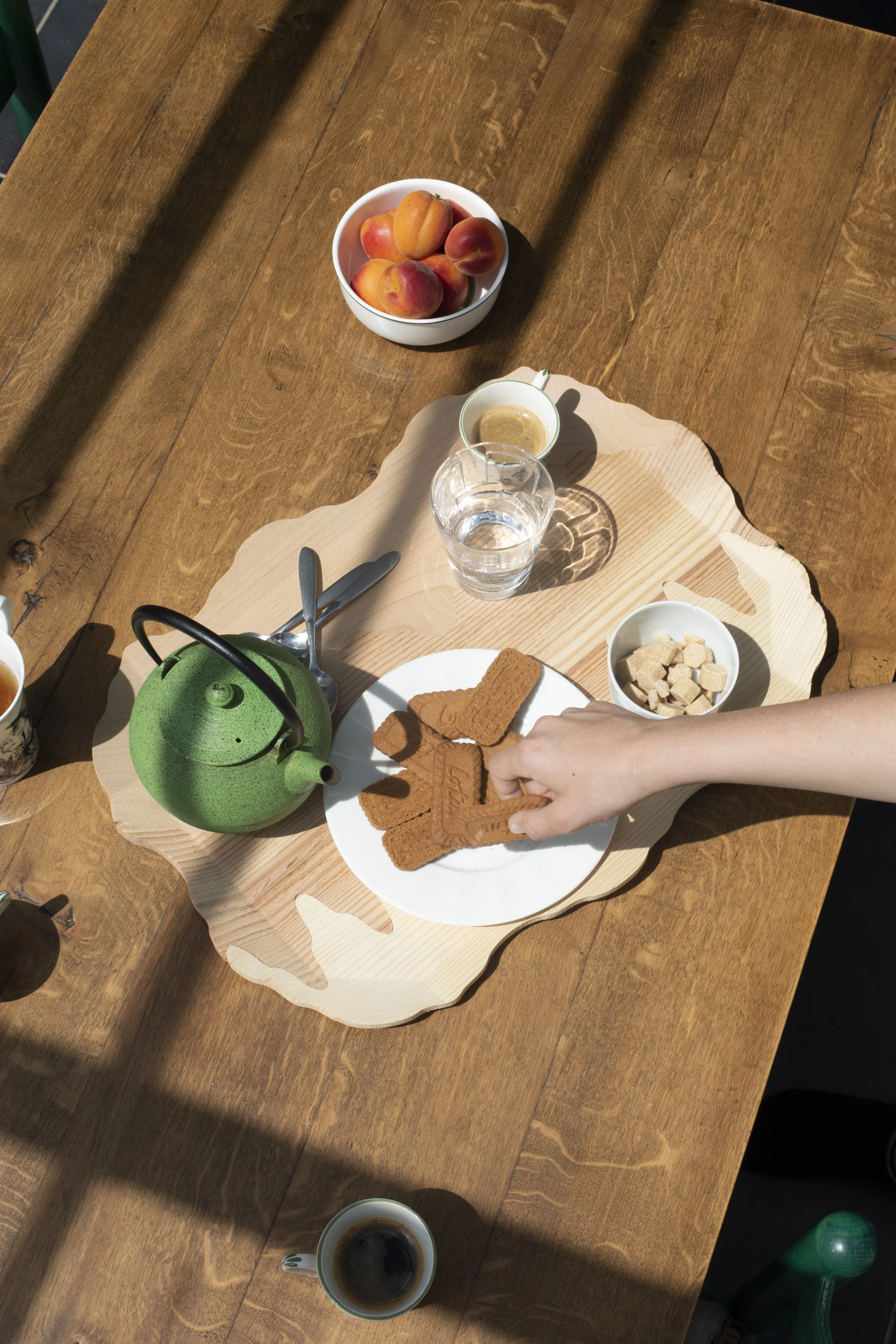 This «Verna» trail, made of three swiss woods (spruce, beech and larch woods), is inspired by the friezes and the traditional swiss cabin. It has been sculpted with a CNC machine to obtain a marquetry like work.